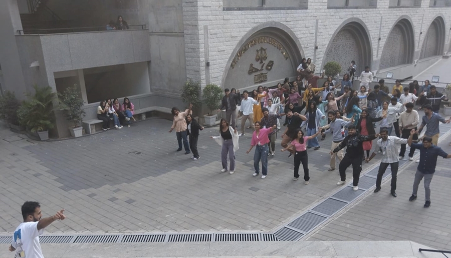 During the event, it was seen that students would join and invite their friends who would bring in more people, students were dancing in the quadrangle and on the balcony facing the quadrangle with their friends.