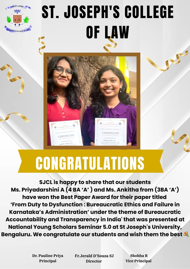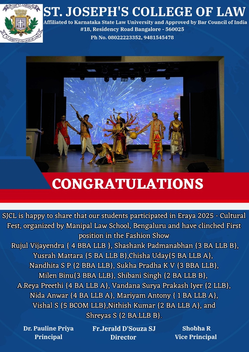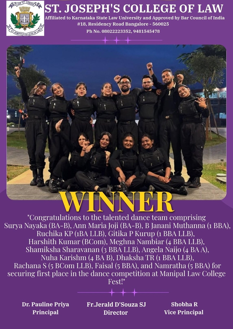 St. Joseph's College of Law is approved by the Bar Council of India (BCI), New Delhi and affiliated to Karnataka State Law University, Hubbali.