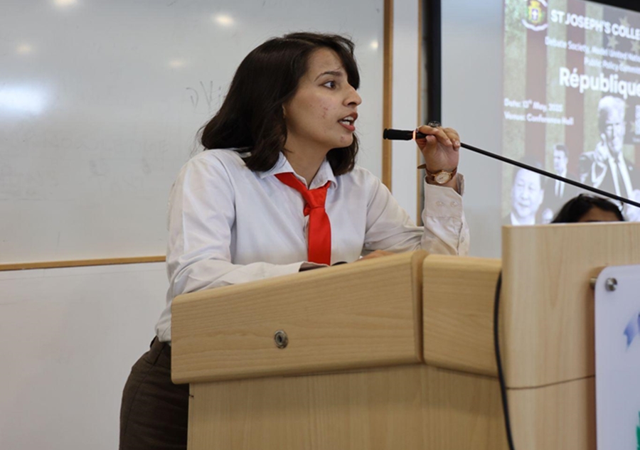 Republiqe 25 was held on 13th of May, 2025 and began on a light-hearted note with a hilarious MAD act by 1st BCOM LLB, who poked fun at Donald Trump’s political antics. This was followed by a formal flag-hoisting ceremony, and the event was declared open with the ceremonial gavel.