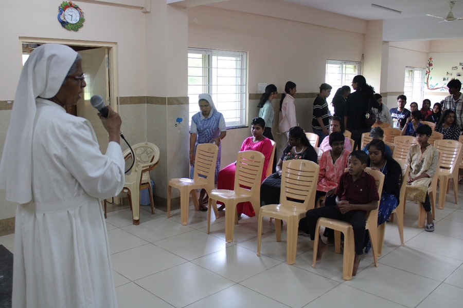 Upon arrival, the students were warmly welcomed by the Sisters managing the school. The group was seated in the hall, where one of the Sisters provided a comprehensive briefing about the school’s background and mission. Established in 2010, the school has been serving children with intellectual disabilities and currently supports around 55 to 60 students, along with over 500 families from various areas around Bangalore. Free transportation is provided daily, ensuring that children from neighbourhoods such as Geddalahalli, Hennur Bande, Lingarajapuram, Nagavara, Kothanur, and others have access to education and personalised care. The school’s inclusive approach focuses on academic learning, life skills, and vocational training, allowing each child to lead a dignified and empowered life.