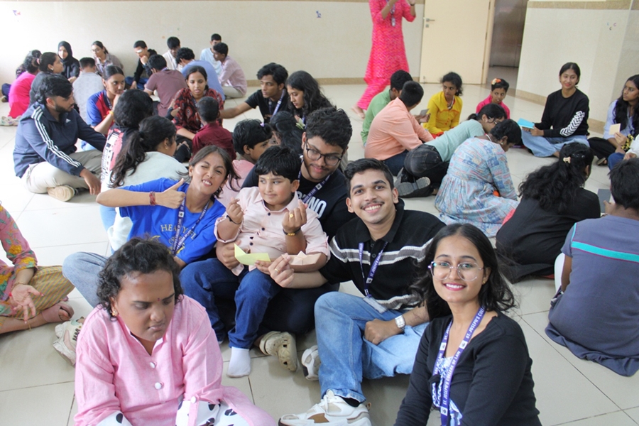 The day’s activities were filled with enthusiasm and interaction. Students engaged with the children through singing, dancing, and playing games like musical chairs. Teams were formed to encourage each child’s participation, creating a lively and supportive environment. Creative activities, such as handprint painting, making paper boats, and origami crafts, were also organised, allowing the children to express themselves freely. The event concluded with serving food and spending quality time with the students, further strengthening the bond between the class and the children.