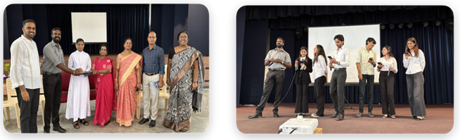 In the second session, Mr. Harish spoke on students’ and teachers’ rights, emphasizing a safe, fair, and productive learning environment. A group song by SJCL students preceded the third session, which was a quiz on POCSO and Good/Bad Touch, conducted by Fr. Shantharaj (III LL. B) and Mr. Tanush (III BCOM LL. B), with prizes for correct answers.