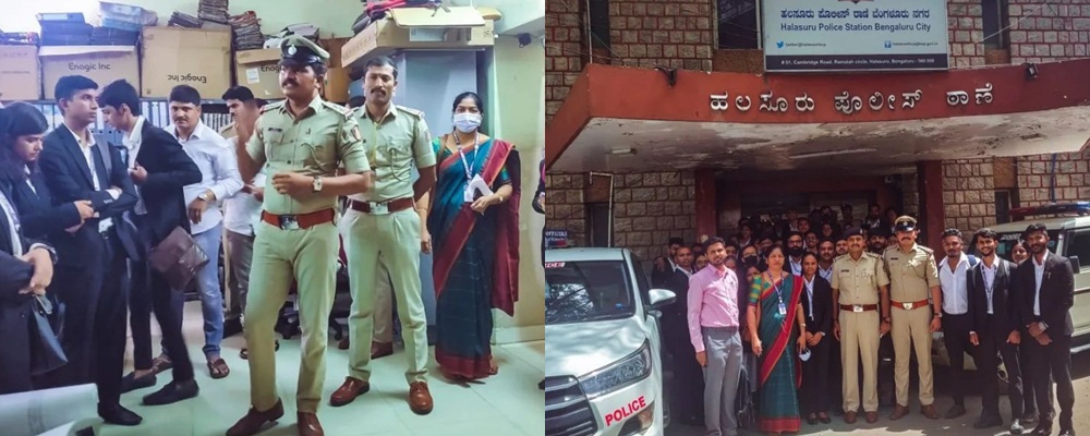 The Criminal Law Committee organized observational trip to Halasuru Police Station, Bengaluru on 17th August 2022, for the students of the 2nd year LLB degree. Around 53 students participated. The purpose of the trip was to understand the physical structure of police station, nature of duties performed by police officers in a police station and the practicalities/application of the various provisions of criminal laws.