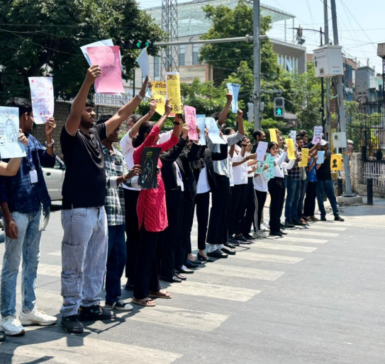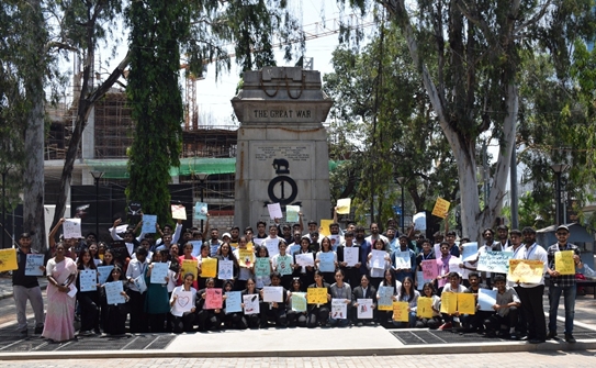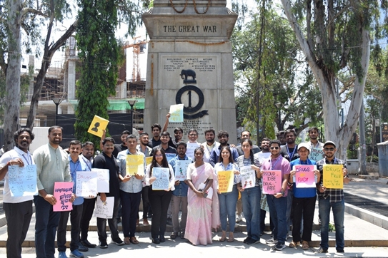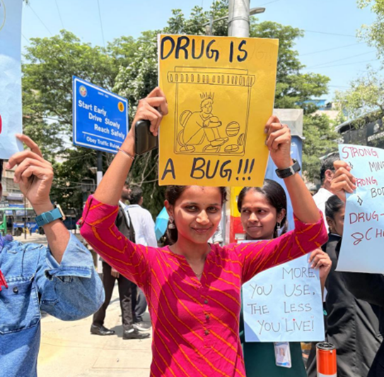 The group then moved towards the Brigade Road War Memorial signal, continuing their mission by displaying impactful slogans on the posters/placards and by forming a human chain—a powerful symbol of unity and collective stand against drug abuse. This public demonstration effectively conveyed the message of solidarity and awareness.