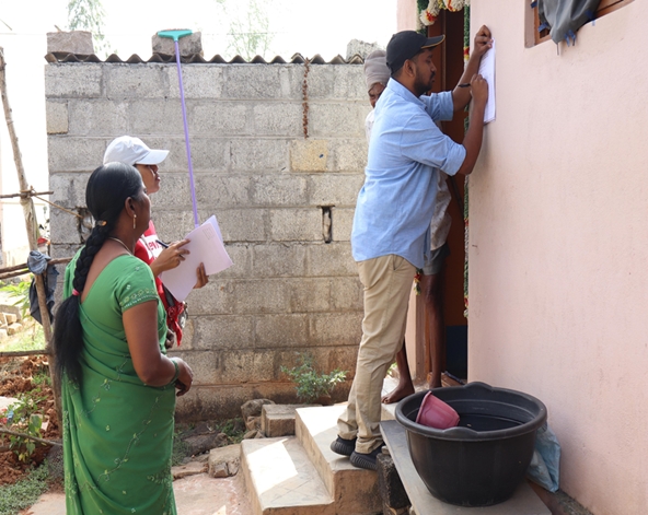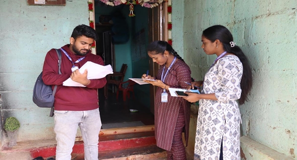In the morning at 8:00 a.m., both the boys and girls, along with the faculty coordinators, gathered at CIRW for breakfast. To begin the survey in Karkalgatta, the student volunteers were again divided into six groups, with each group assigned one lane of the village. Using the survey forms provided by the college, the teams collected information from households. The survey included details such as house ownership, vehicles, legal issues, pending cases, and important identification documents like Aadhaar Card, Ration Card, E-Shram Card, Labour Card, BPL Card, Birth Certificate, and Death Certificate.