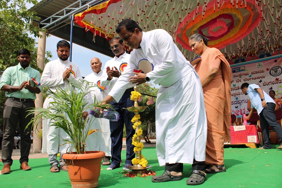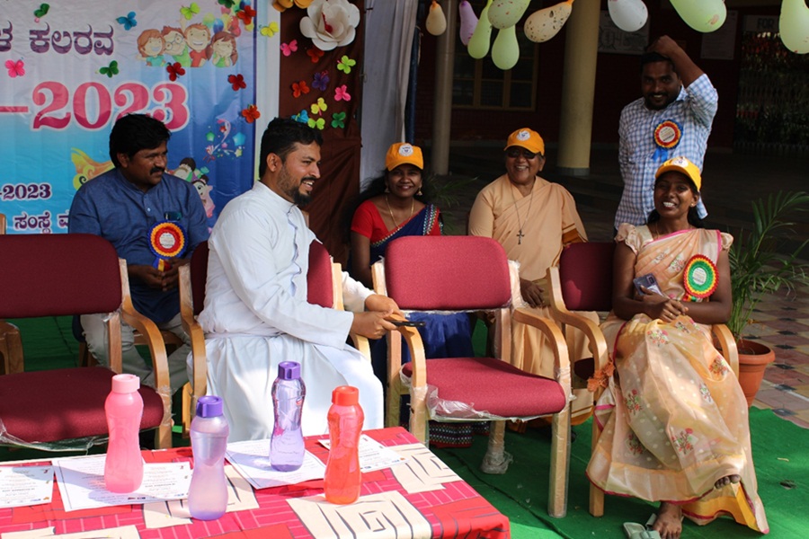 Ten students (Ms. Vimala Mary, Ms. Harshini. C. Reddy, Ms. Ivy Crowny, Ms. Pooja, Ms. Rachana, Mr. Shreyas Gowda, Mr. Ajay Peter, Mr. Lohith, Mr. Mallikarjun and Mr. Mrudhul) of St. Joseph’s College of Law, Bengaluru and Prof. Harish attended this event and organized various cultural events as well as recreational games for the children studying in several schools/study centers’ in and around Manvi, Raichur. The aforesaid students were divided in four groups and were delegated to look after i) competitions such as essay writing, pick and speak and chess; ii) to coordinate in organizing various recreational games; iii) to upkeep the discipline of the children in and around the games stalls and lastly iv) to coordinate with the stage set-up and other allied activities. A total number of 700+ children attended this event and they were accompanied by their respective school/study centers’ Teachers.