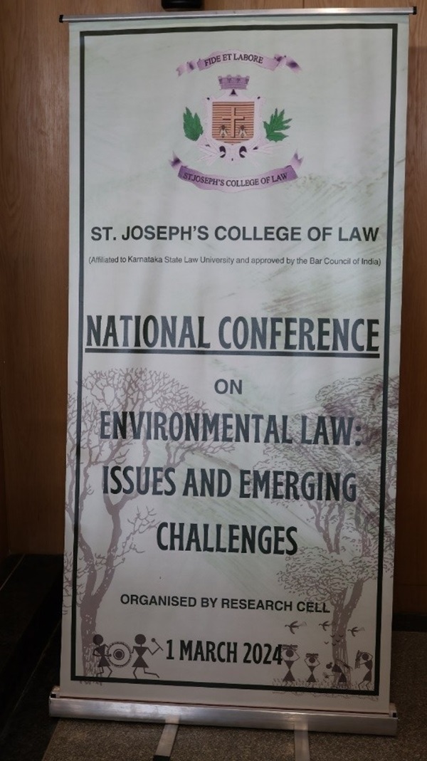 The Research Cell of St. Joseph’s College of Law (SJCL) organised a one-day National Conference on “Environmental Law: Issues and Emerging Challenges” on March 1, 2024. The Conference was held at the Conference Hall, New Building of the SJCL Campus.