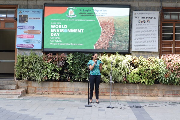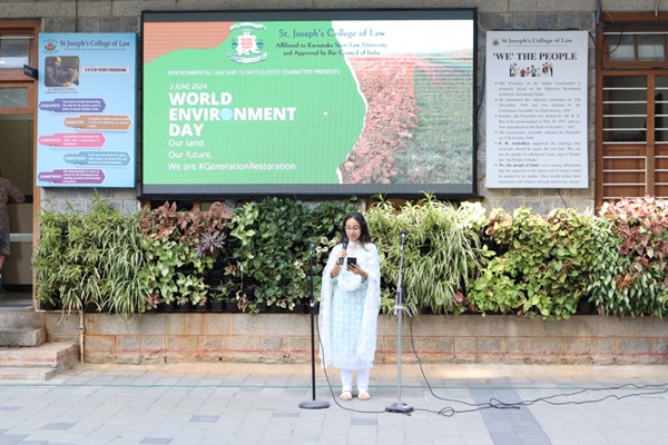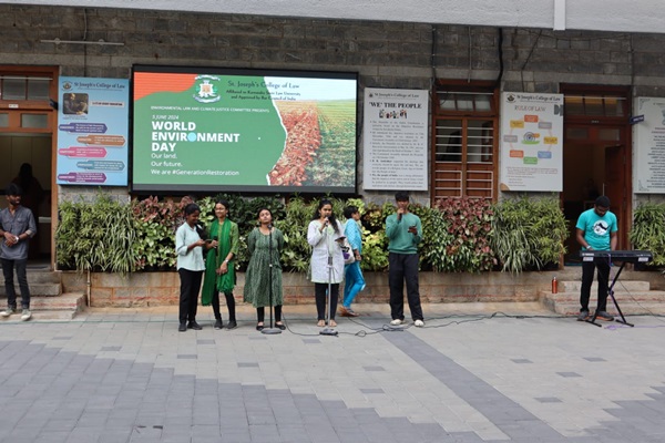 In order to mark the beginning of the celebration of Ecotopia 2024, the Environmental Law and Climate Justice Committee and NSS committee organised an awareness and cultural event on World Environment Day. It began with a group performance by the music team of the college, who performed a medley of songs about nature and conservation in vernacular languages of India. It was then followed by speeches highlighting various environmental issues and possible initiatives that could be undertaken to combat these problems. In addition to this, the committee put up interactive posters all over the college, asking environmentally-conscious questions for the students and teachers to answer.
